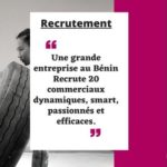 Recrutement urgent de 20 commerciaux pour une grande entreprise au Bénin