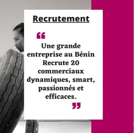 Recrutement urgent de 20 commerciaux pour une grande entreprise au Bénin