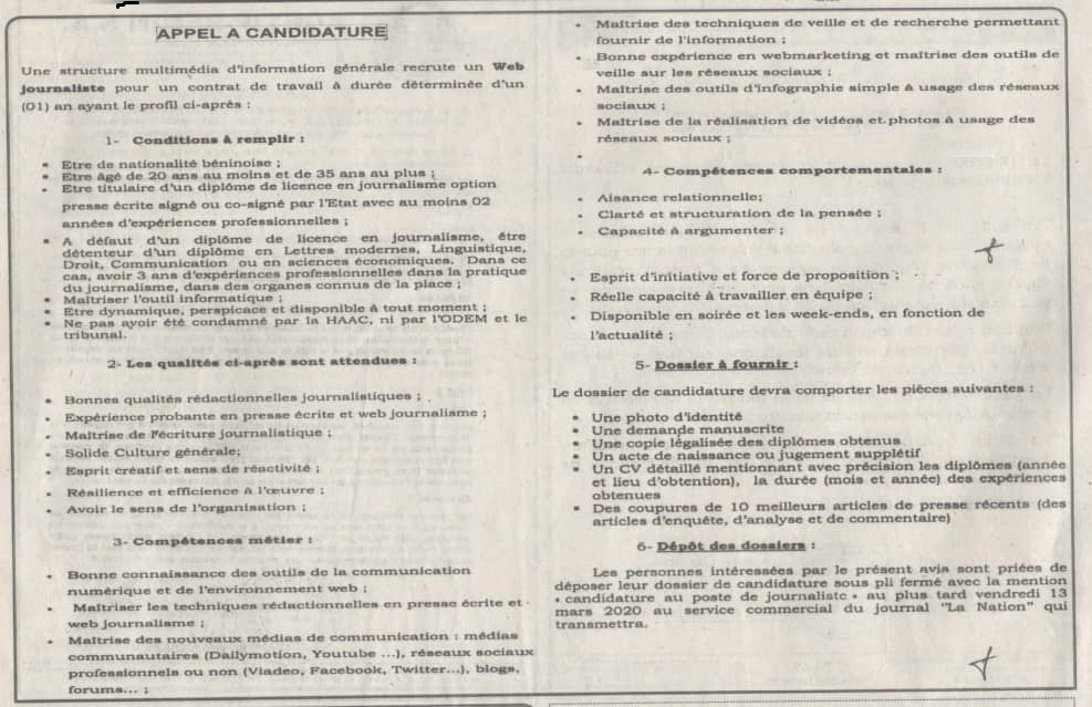 RECRUTEMENT BENIN: Dans le cadre du renforcement de ses actions de communication et de production de contenus visuels de qualité, SENS Bénin recrute un Journaliste Reporter d’image Junior pour assurer la production de supports audiovisuels professionnels